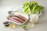 サバは腹骨をそぎ、ひとくち大の大きさに切る。<下味>にからめ、10分おく。
