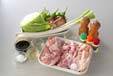 鶏皮は塩を入れた熱湯でゆで、水洗いして、食べやすい大きさに切る。