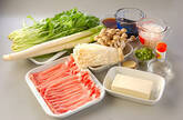 煮立ってきたら、豚肉を加え、時々アクを取りながら他の具も加える。肉は色が変わったら小鉢に取り、<ポン酢タレ>とお好みの<薬味>を入れていただく。