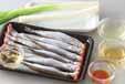 シシャモの両面に刷毛で酢を薄く塗り、予熱したグリルの焼き網に、白ネギと一緒に並べる。