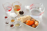 ニンジンは皮をむき、大きい場合は縦半分に切り、輪切りまたは半月切りにする