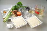 木綿豆腐は12等分に切る。ヒタヒタの水と共に鍋に入れて中火にかける。煮立てばザルに上げ、キッチンペーパー等に包み、水気をきる。