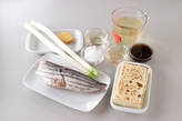 鍋に<合わせだし>を入れて強火にかけ、煮立てば薄切りのショウガを加えてひと煮立ちさせる。