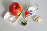 リンゴをヨーグルトと共に器に盛り、シナモンパウダーを振り掛け、あればミントの葉を添える。