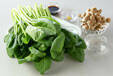 小松菜は塩少々を入れた熱湯でサッとゆで、水に取り、水気を絞って3cmの長さに切る。