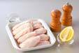 鶏手羽先は身の厚い部分に切り込みを入れ、全体に酒を振り掛ける。