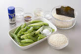 エンドウ豆はさやから出し、塩をまぶしつける。