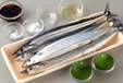 サンマは尾から頭に向かって、包丁の背側で軽くこすり、ヌメリを水洗いする。頭、尾を切り落として半分の長さに切る。
