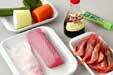 大根、ニンジンは皮をむき、縦に細いせん切りにして冷水に放つ。パリッとすれば水気をきって、食べる直前まで、抗菌のビニール袋等に入れ、冷やしておく。