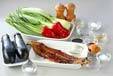 中華鍋に残りのサラダ油大2を入れ強火にかけ、水気を拭き取ったナスを加えて炒め、赤ピーマン、ニンニクの芽を加え、しっかり炒め合わせる。