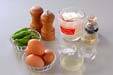卵と<調味料>を混ぜ合わせる。
