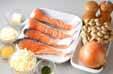 1のフライパンに玉ネギを加え、玉ネギが少し透き通ってくればシメジを加えてサッと炒めあわせ、塩コショウで味を整える。1のサーモンにのせる。