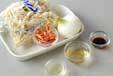 熱いうちに干しエビと一緒に<合わせ甘酢>に加えて混ぜ合わせ、器に盛る。