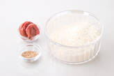 炊飯器に洗い米、分量の水を入れ、梅干しをのせてスイッチを入れ、普通に炊く。