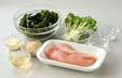鶏ささ身は厚みを半分に切り筋をひき、酒、塩を入れた熱湯でゆで水気を切って食べやすい大きさにさばく。