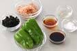 ピーマンは縦半分に切って種とヘタを取り除き、縦細切りにする。長い場合は半分に切る。