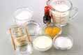 牛乳の半量を沸騰直前まで温め、1のボウルに少しづつ混ぜながら加え鍋に戻し、混ぜながら弱火にかけトロみがつくまで温める。