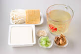 鍋にだし汁を入れ強火にかけ、煮立てばエノキ、油揚げを加える。