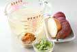 鍋にだし汁、水気を切ったサツマイモを入れて中火にかける。煮立てば火を少し弱め、サツマイモに少し透明感が出てくれば、玉ネギを加える。
