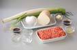 ボウルに合いびき肉、白ネギ、細ネギを半量、長芋又は山芋を入れ、よく混ぜ合わせる。