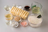 米は洗ってザルにあげ、30分おく。炊飯器に洗い米を入れてぬれ布巾で汚れを拭き取った昆布をのせ、酒を加え、すし飯用の線まで水を入れて炊く。