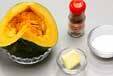 カボチャは水に通し、ぬれたまま耐熱容器に並べ、ラップをかけて電子レンジで4~5分加熱する。竹串がス~ッと刺さる位まで柔らかくなれば、バターを加えて全体にからめる。