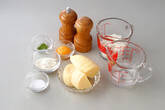 ボウルに<衣>の卵黄と冷水を混ぜ合わせ、網でふるいながら小麦粉を加え、ざっくりと粉が残る程度に手早く混ぜる。
