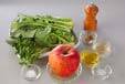 リンゴは皮をむいて芯を取り、食べやすい大きさに切り、塩水に放ってすぐにザルに上げ、しっかり水気を切る。