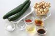 キュウリは両端を切り落とし、まな板に置き塩をかけ手のひらでコロコロ転がし(板ずり)、水洗いする。水気をきってすりこぎ又はビン等でキュウリを軽くたたき、食べやすい大きさに割る。