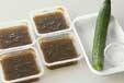 味付けしていない生もずくの場合は、たっぷりの熱湯に入れ、菜ばしでサッと混ぜる程度でザルに上げ、水洗いし水気を切る。