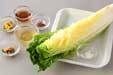 白菜は4cmの長さに切り、軸は縦に細切りにし、葉は横に細切りにする。
