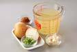 鍋にだし汁、ジャガイモ、玉ネギを入れ強火にかけ、煮立てば火を弱める。