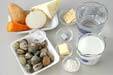 アサリの殻が開けば牛乳を加え、煮立つ直前に火を止め、塩コショウで味を整える。器に入れ、クラッカーを割って加える。