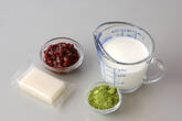 抹茶ミルクにお餅と小豆が入って大満足!レンジだけでできちゃうお手軽デザートです。アイスクリームを浮かべてもおいしそう♪