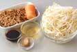 できればモヤシは根を取り、長い場合は食べやすい長さに切り、水に放つ。