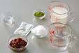 1を網でこして、器に流し入れ30分以上冷やし固める。固まったらゆで小豆とシロップを掛ける。