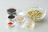 乾燥大豆は虫食いや変色している物を取り除き、サッと水洗いして水に10分位浸けておく。水気を切り、布巾等で水気を拭き取る。