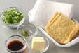 フライパンにバターを入れ中火にかけ、バターが溶け出せばハンペン油揚げを加え、ハンペンに薄く焼き色がつくまで焼く。