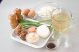 ホタテの缶詰めは、汁とホタテの身に分けておく。卵は溶きほぐす。