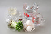 <たれ>の材料をひと煮立ちさせ、冷ましておく。