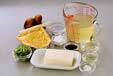 鍋にだし汁入れ強火にかけ、煮立てば<調味料>、シイタケ、白ネギ、油揚げを加える。