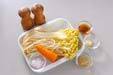 ニンジンは皮をむき、モヤシくらいの太さのせん切りにする。