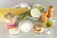 モッツァレラチーズは水気をきり、小さめの一口大に切る。グリーンアスパラは茎の堅い部分を落とし、ピーラー等で皮をむき、3cmの長さの斜め切りにする。玉ネギは縦薄切りにする。ベーコンは1cm幅に切る。