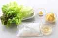 器にサニーレタスを敷き、刺身コンニャクを並べ、<からし酢みそ>をかける。