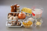 それぞれのグラタン容器に、5を入れて残りの<ホワイトソース>を掛け、更にピザ用チーズを全体に掛けて、250℃のオーブンで12~15分、表面に焼き色がつくまで焼く。