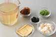 鍋にだし汁を入れて強火にかけ、煮立てば麩、油揚げを加える。