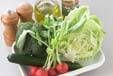 食べる直前まで冷蔵庫で冷やしておいた野菜を盛り合わせ、EVオリーブ油、バルサミコ酢、塩コショウをかけていただく。