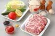 器に、キュウリと合わせたキャベツ、トマト、4つに切ったレモンを盛り合わせ、食べやすい大きさに切ったトンカツをのせる。よく混ぜ合わせた<合わせソース>をかける。好みでキャベツにマヨネーズ等をかけても。