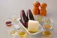 <ナスナムル>を作る。ナスに砂糖、酢、しょうゆ、おろしニンニク、ゴマ油を加え、よくからめ、冷やしておく。