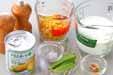 牛乳、固形ブイヨンを入れ、固形ブイヨンが煮溶ければ、クリームコーン、水煮コーンを加える。